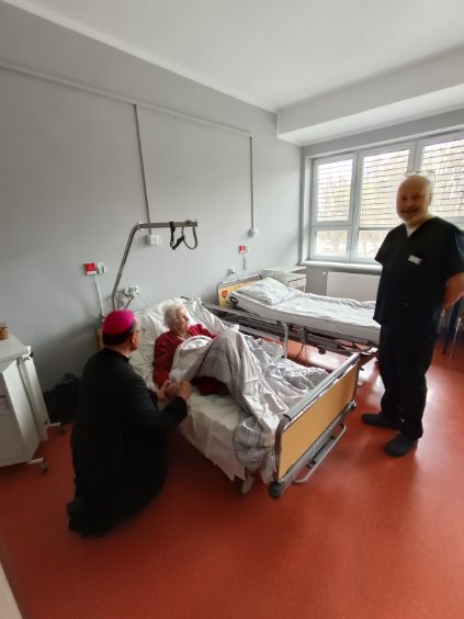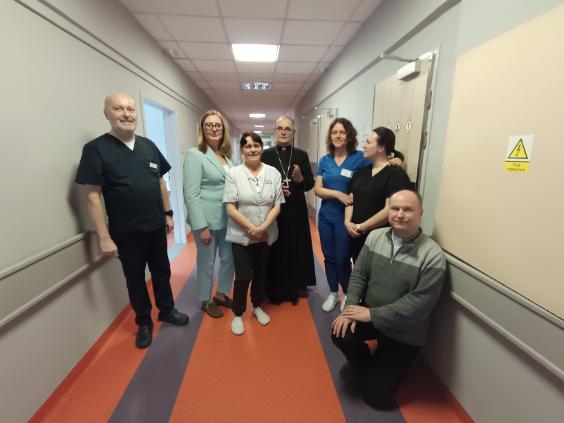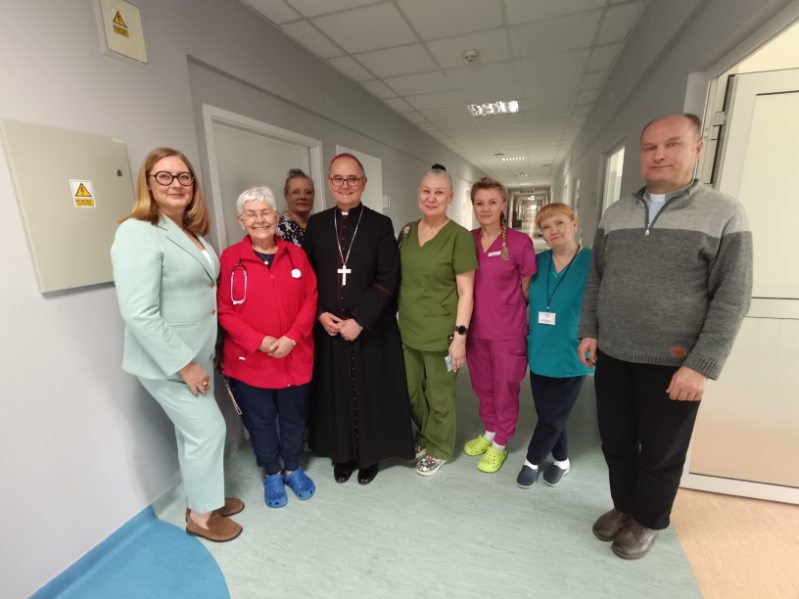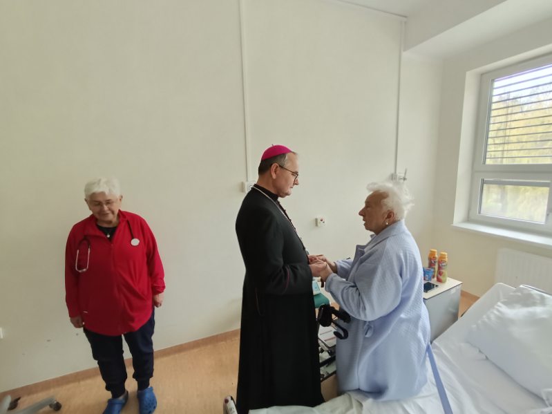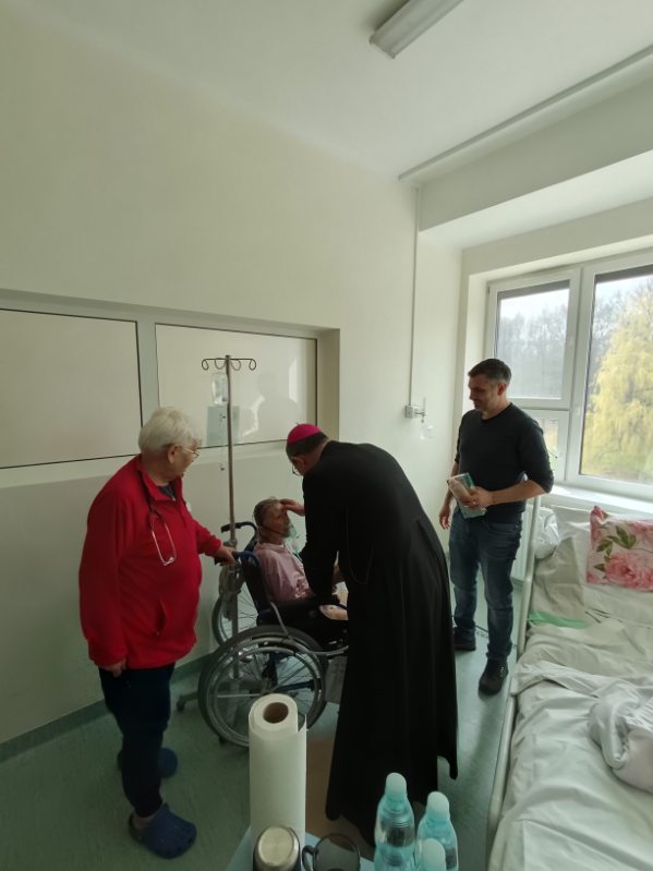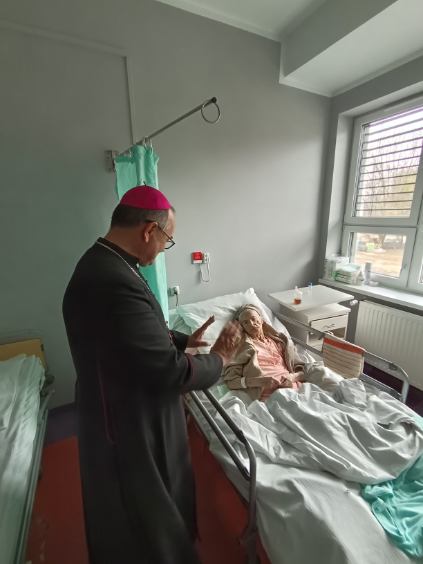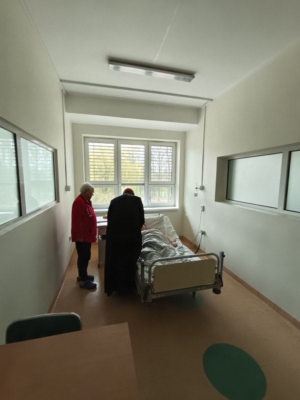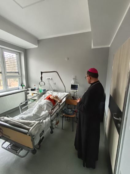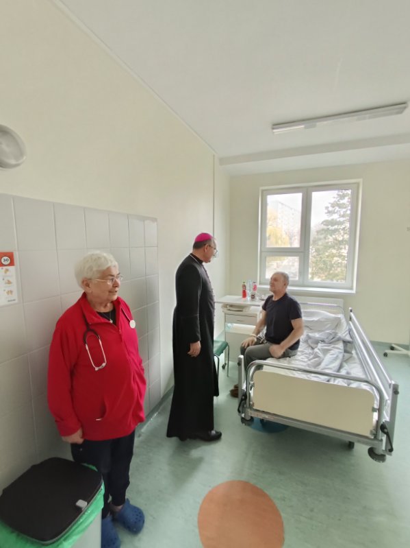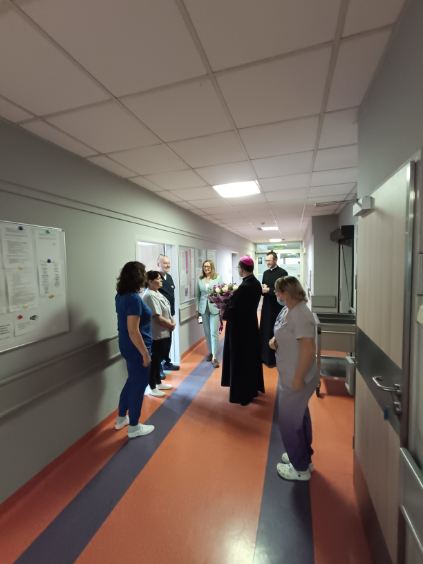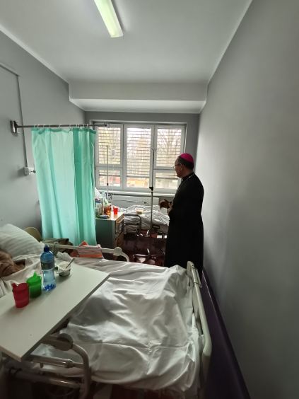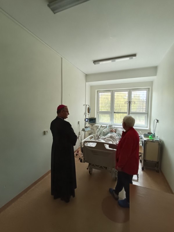 Ks. Arcybiskup odwiedza chorych pacjentów na oddziałach i nasz personel