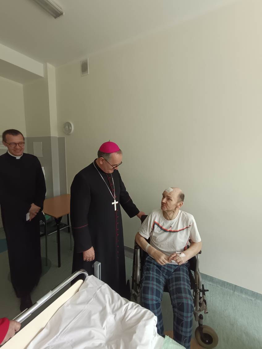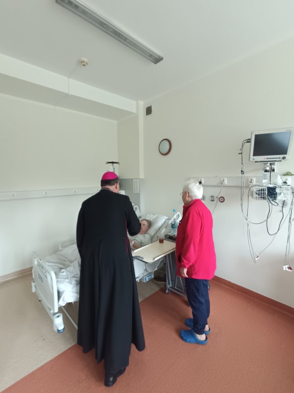 Ks. Arcybiskup Andrzej Przybylski w ramach wizytacji Parafii św. Krzysztofa odwiedził chorych pacjentów na oddziałach geriatrii i kardiologii oraz nasz personel - 11 IV 2026 r.